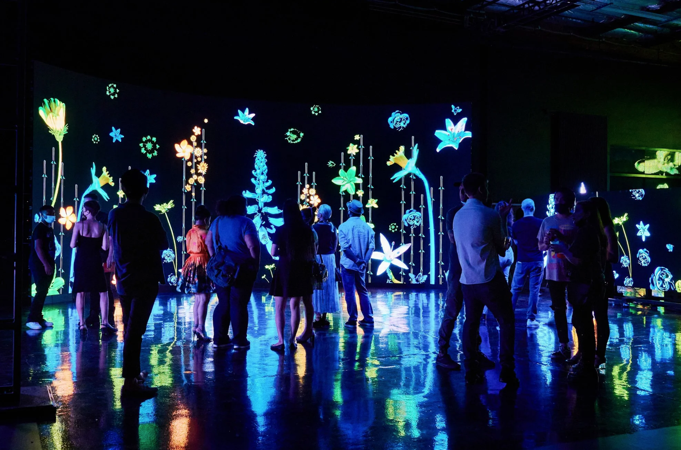 West is one of those feast-or-famine artists who produces nothing unless it can be expressed in the form of an immersive installation. Perhaps most well-known for her photo-installation Eden at Coachella 2023, she lives and dies by the grants and partnerships required to create and even simply display the pieces. With an entire wing of her home sequestered off and devoted to high-tech cameras automatically photographing flowers for months and even years on end, West simply could not exist in her current incarnation without tech institutions and innovations. This doesn’t make her boring: while her subject is classically commercial and crowd-pleasing, West’s choices have an eerily science-fictional—almost horror-film—edge, bringing a safe-cracker’s eye for disturbance and detail to her blacklit tableaux. The massive scale her patrons’ money provides is not mere extravagance: magnified dozens of time, the botanical eccentricity and alien biology of plants makes these images far more than simply a retread of cottagecore aesthetics. Likewise West’s druggy club-girl palette is disconcerting when paired with subject matter that is so undeniably real, familiar, and solidly framed. West’s work at its best imbues the viewer with a renewed sense of biofascination at the weird and easily-dismissed life that seethes in every garden.