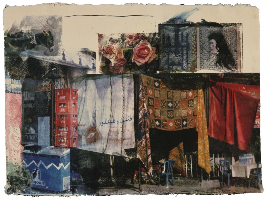 The exhibition on view is only a partial look into the archive—and this reviewer is tempted to say that’s more than enough—but there are genuine stand-out pieces including Ape (1969), a three-color (although it looks all red) lithograph collage of photography, what looks like fabric, and some kind of dial or compass whose disparate images form together to read like a sort of darkly ambiguous rebus of the Kennedy assassination and Rookery Mounds – Steel Arbor (1979) another three-color (this one looks black and white) lithograph collage of images of posts, wires, concrete mound and a car grill to form a sort of sketch of post-Constructivist pictorial space reminiscent of David Hockney’s Polaroid compositions.